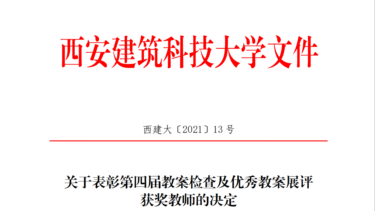 为展示获奖教师个人风采,进一步发挥优秀教师的带动作用,激励全校教师聚焦立德树人,投身本科教学,不断提高我校教育教学质量,做好课堂教学过程建设和规范管理,提升教师教案编写的水平,学校开展了第四届教案检查及优秀教案展评工作。根据《关于开展第四届教案检查及优秀教案展评活动的通知》(西建大教发[2020]6号)文件精神,经各学院组织、推荐,学校通过教案函评和现场讲课两个环节评审,综合两项成绩,共评出一等奖13人、...