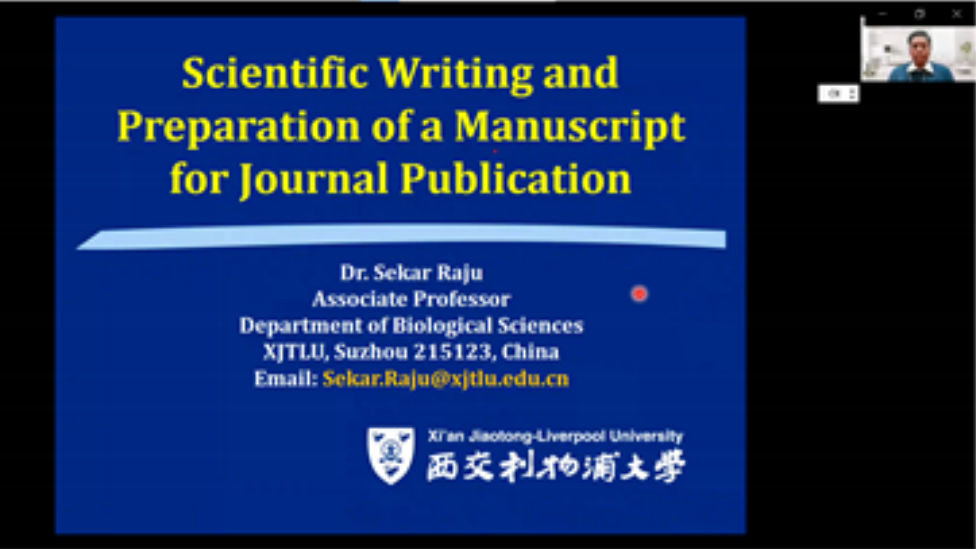 4月23日,环境科学与生态学学科领域知名SCI期刊《BMC MICROBIOLOGY》副主编Sekar教授应邀为足球比分app 师生作了题为 《Scientific Writing and Preparation of a Manuscript for Journal Publication》的学术报告。报告依托腾讯会议平台组织召开,副院长张海涵教授主持会议,苏俊峰教授以及约220名研究生共同聆听了本次学术报告。 图1 张海涵教授主持会议报告会上,Sekar教授结合个人实践工作经验,首先从“什么是科学写作”以...