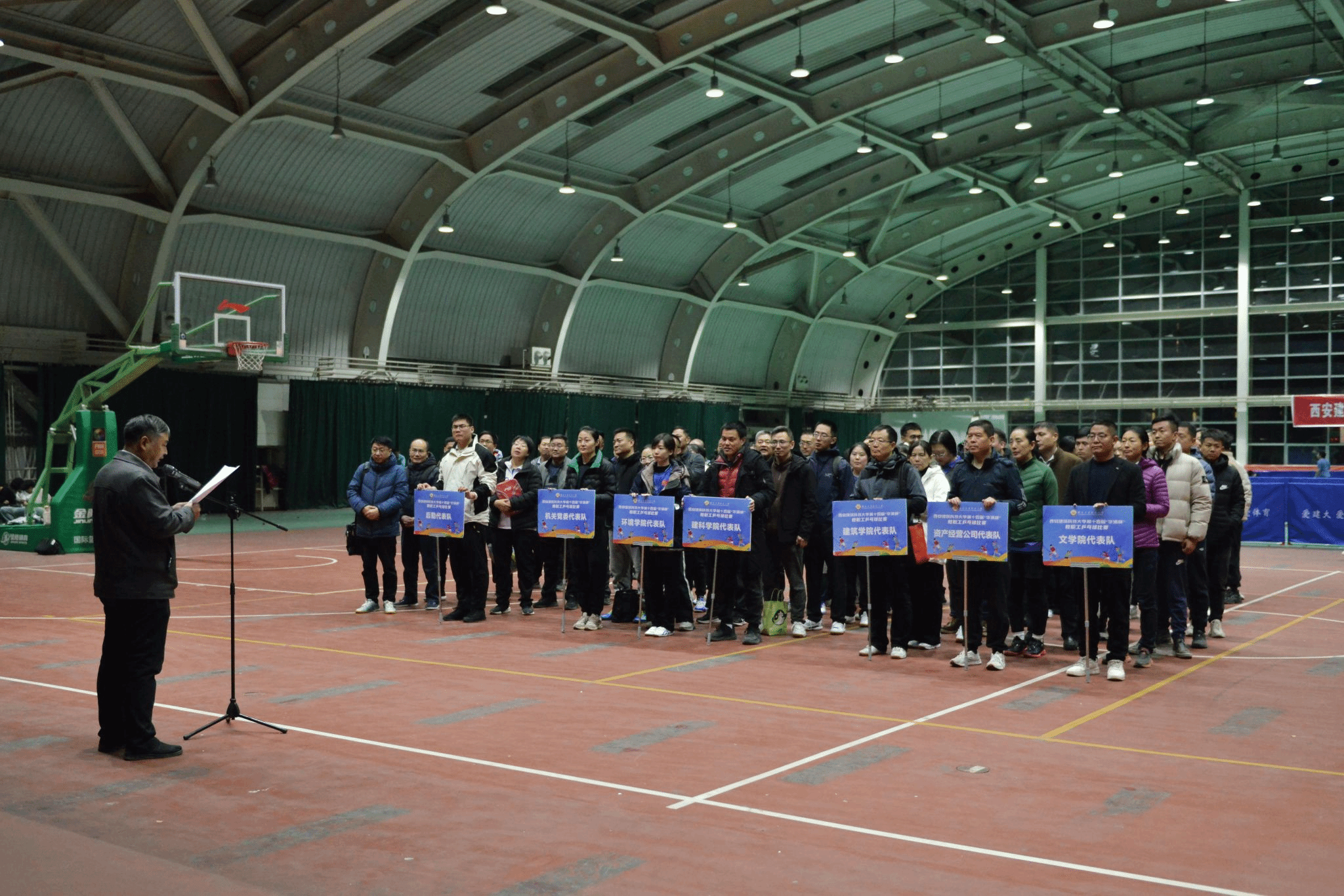11月28日,西建大第十四届教职工乒乓球比赛在雁塔校区文体馆落下帷幕。校党委常委、副校长雷鹏、陈荣,校党委常委、组织部部长、统战部部长卜长安,校工会常务副主席迟志武,华清集团党委书记魏井福,体育学院党总支副书记尉庆国,工会副主席乔琨,比赛裁判组组长续媛媛等出席闭幕式并为获奖代表队颁奖。闭幕式由校工会副主席程永阳主持。