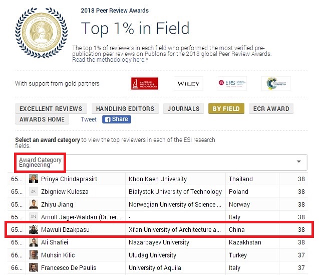 该奖项共分为四类奖项:(a)Top 1% in each field,奖励在所属领域排名前1%的顶级审稿专家;(2)Top quality reviewers,奖励提供高质量同行评议的审稿专家;(3) Top reviewer for top journals,奖励为同行评议数量上排名前30%的学术期刊作出卓越贡献的审稿专家;(4)Top handling editors,奖励处理稿件最多的10位学术编辑。