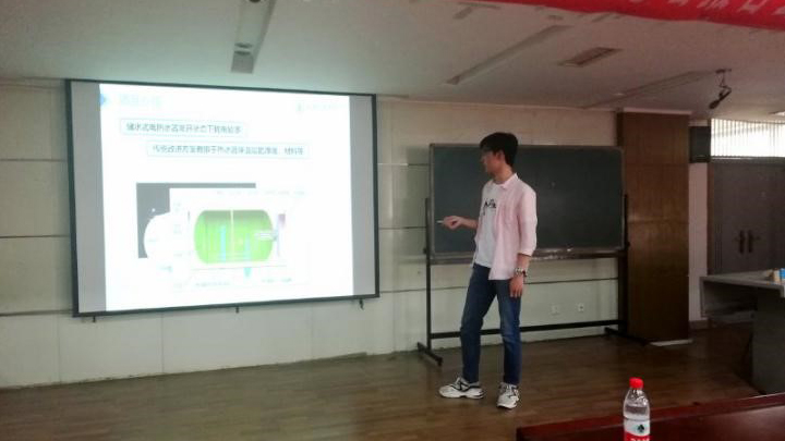 之后为同学们进行经验分享的是肖明堃同学。他们的项目名称为“电热水器高效热流管理节能方案设计”。相较于栗宪业同学以备赛时间线方面进行分享,肖明堃同学则更加侧重项目介绍。肖同学先是从项目的创新点、实物模型及计算、节能效果和成本核算等多方面进行介绍,而后他从如何对项目存在的问题提供具有针对性的解决方案、同市场已有产品相比如何凸显优势等问题为同学们提供了一定的思路。