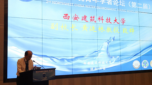 开幕式上,由我校副校长、黄廷林教授发表了热情洋溢的讲话。他代表西安建筑科技大学向彭永臻院士及来自全国各地的嘉宾、专家学者表示热烈的欢迎和诚挚的问候,向论坛发起人赵亚乾教授及筹办本次论坛付出勤劳努力的专家、青年学者及工作人员表示衷心的感谢。他介绍了西安建筑科技大学的建设与发展,希望论坛为水环境青年学者提供更广阔的学术交流和合作平台,希望大家在友好热烈的氛围中相互交流、互学互鉴,共论水环境进步之道,积极推进水环境保护相关领域的快速发展。他说:青年学者是我国水环境科技创新的主力军,是建设绿水青山的重要力量,是我国引领未来世界水环境领域研究前沿的希望。当前,我国社会主义建设事业进入了新时代。新时代新征程呼唤新担当新作为,让我们携起手来,高举习近平新时代中国特色社会主义思想伟大旗帜,努力成为生态文明建设的参与者、贡献者与引领者。