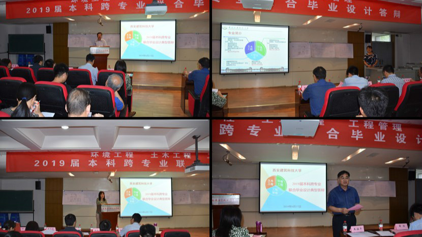 “跨专业联合毕业设计”是由我校环境工程专业率先提出,联合土木工程和工程管理专业进行的毕业设计改革新举措。经过从上学期期末的毕业设计选题、遴选相关专业教师、组建联合毕业设计小组,到本学期的联合毕业实习、每两周集中答疑、沟通交流、中期汇报、完成设计成果等半年的工作,于2019年6月17日上午8:30在环工楼716会议室举行了西安建筑科技大学首届本科“跨专业联合毕业设计”典型答辩。