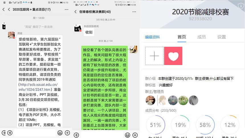 在做好疫情防控同时,在校双创办和团委的指导和协助下,努力做细做实双创竞赛备赛和组织工作,积极探索疫情防控期间双创竞赛线上精准服务方式,综合运用线上视频课程、竞赛团队线上交流、导师连线辅导等线上方式做好今年“互联网+”大学生创新创业大赛、挑战杯全国大学生创业计划竞赛、节能减排社会实践与科技竞赛、环境友好科技竞赛等竞赛的项目挖掘、作品打磨和赛事组织工作。力争让学生“停课不停创,备赛不停歇”。
