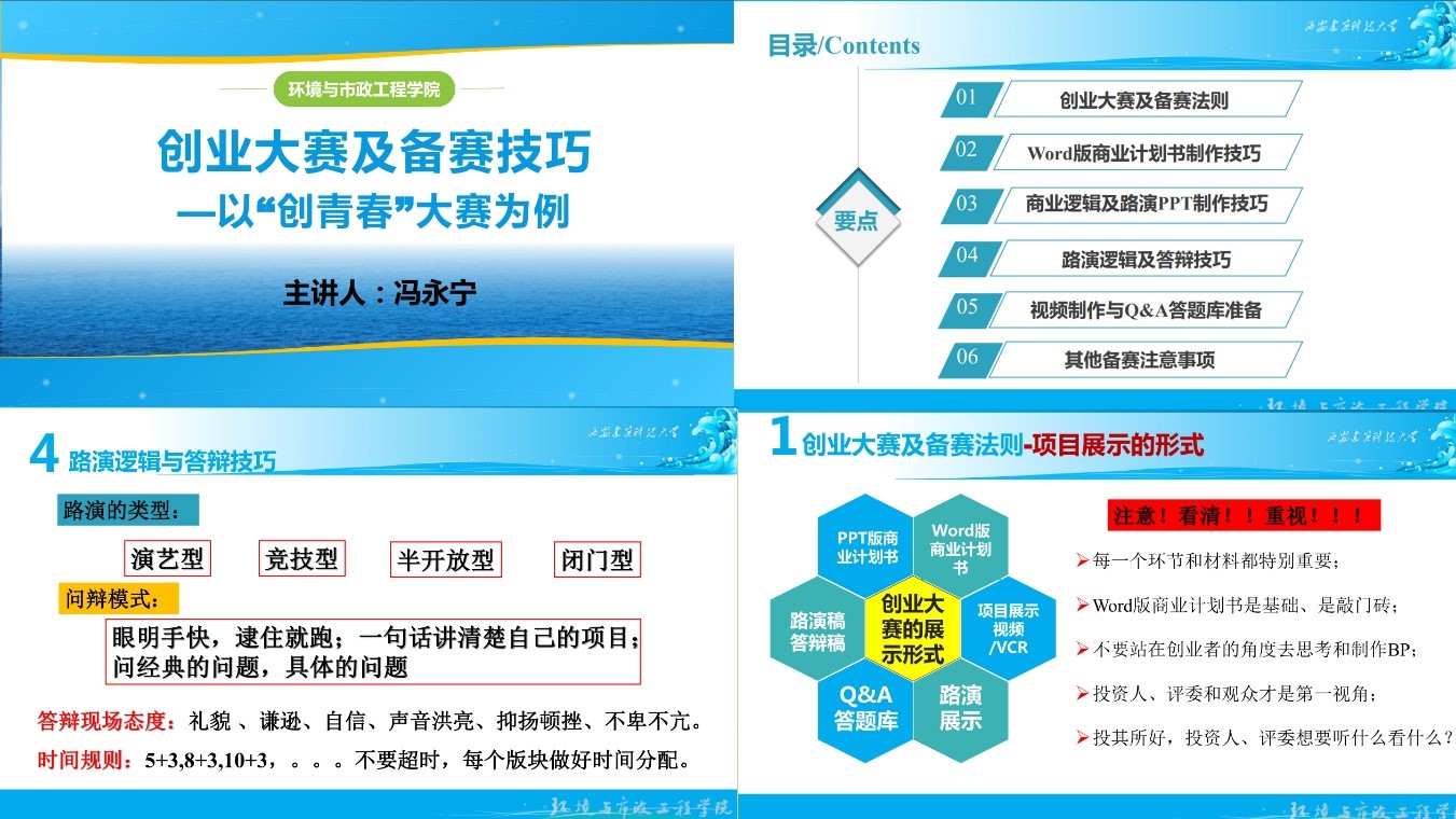 准对目前已经入围校粉体杯决赛的11个项目,学院采用分片包干制,每个老师服务一个至两个团队,持续跟踪作品修改情况,协调学院各种资源精准解决项目修改过程中的各种困难。3月18日晚学工办主任冯永宁通过网络会议的形式对进入校赛决赛的参赛学生进行了题为《创业大赛及备赛技巧—以“创青春”大赛为例》的辅导,本科生、硕士生80余人参与其中。辅导通过创业大赛及备赛法则、商业计划书制作技巧、商业逻辑及路演PPT制作技巧、路演逻辑及答辩技巧、视频制作与Q&A答题库准备等方面的讲解,让学生能够有针对性的做好作品修改打磨。