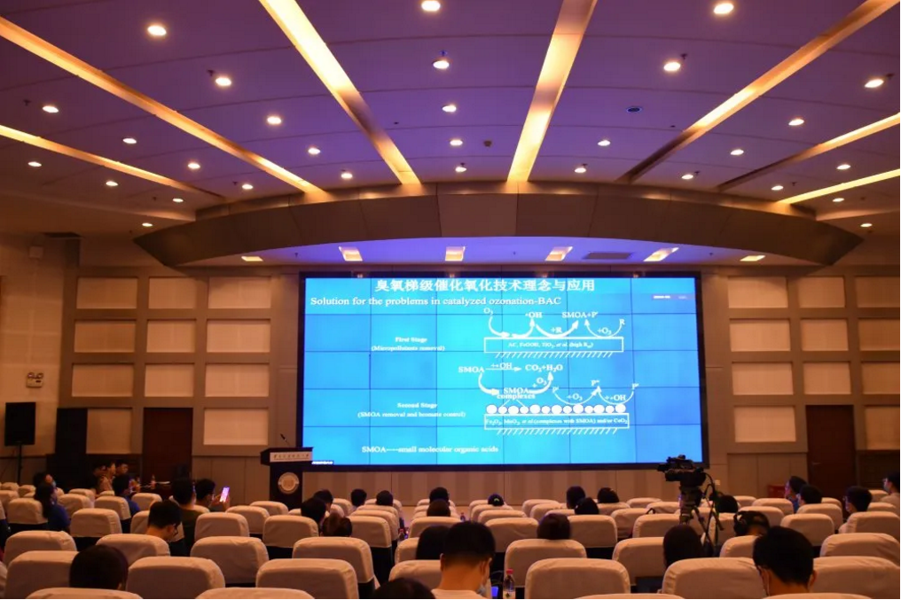 教授马军作了题为“臭氧高级氧化技术研究进展及在污水深度处理中的应用”的特邀报告。马院士针对城市水资源面临的挑战以及污水处理与资源化面临的问题,阐述了臭氧高级催化氧化技术的发展历程。结合自己的研究成果,马院士详细地讲述了臭氧催化氧化的作用机制、形成条件及控制方法以及臭氧高级氧化在污水深度处理中的应用,并提出了臭氧梯级催化氧化技术理念,为臭氧高级氧化在污水深度处理中的应用提供新的思路。