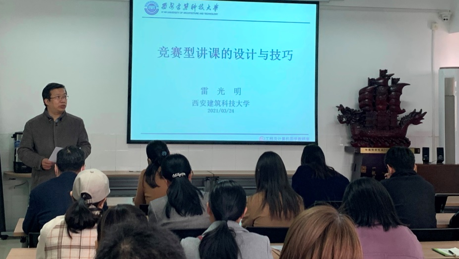雷光明教授主要从精选讲课内容、丰富讲课形式、注意讲课细节、团队与个人及荣誉与责任、教学设计注意事项五个方面进行,结合实际竞赛中的视频,形象具体的说明了以上五个方面在讲课竞赛中的重要性,细致的讲解了各个方面中应注意的问题和经验分享并希望参赛教师能够取得优异的成绩。