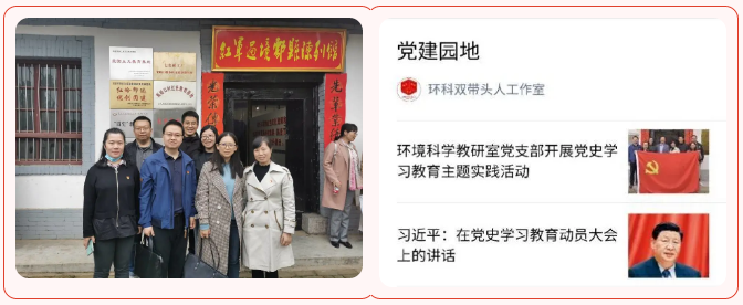 环境科学教研室党支部开展形式多样的党史学习教育,在学史明理上下功夫,深刻认识红色政权来之不易、新中国来之不易、中国特色社会主义来之不易,深刻理解中国共产党为什么能、马克思主义为什么行、中国特色社会主义为什么好,不断增强对党的政治认同、思想认同、情感认同;在学史增信上下功夫,坚持不懈用习近平新时代中国特色社会主义思想武装头脑,自觉增强"四个意识",坚定"四个自信",做到"两个维护",坚定不移听党话、跟党走;在学史崇德上下功夫,大力弘扬光荣传统和传承红色基因,牢记为党育人,为国育才使命,以更加奋发有为的精神状态投入到工作中去;在学史力行上下功夫,努力锤炼教书育人的过硬本领,落实立德树人根本任务,培养堪当民族复兴大任,德智体美劳全面发展的社会主义建设者和接班人。以优异成绩迎接建党100周年,以学习实效推动学校、学院事业发展迈上新台阶。