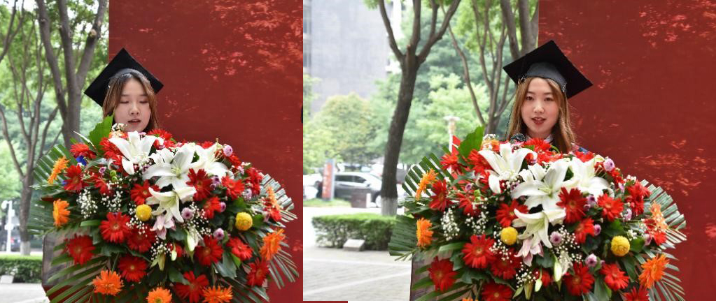 毕业生代表樊媛媛、贺豪华同学发言