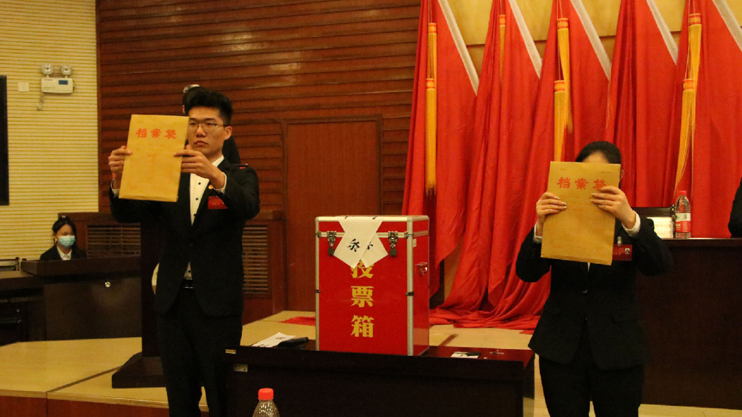 总监票人吕博昊宣布学生会主席团、学生会委员会委员、本科生出席校双代会代表选举结果,总监票人吝力宣布研究生会主席团、研究生会委员会委员、研究生出席校双代会代表选举结果。