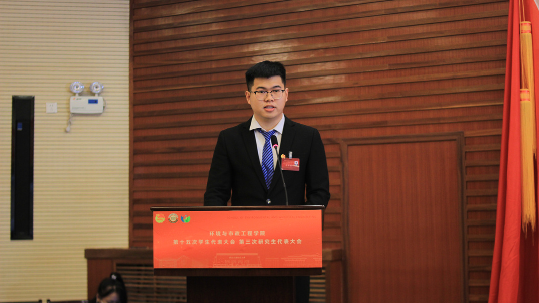 研究生会执行主席荆若松同学代表研究生会委员会作题为《肩负时代重任 矢志艰苦奋斗 团结带领广大环境研究生
