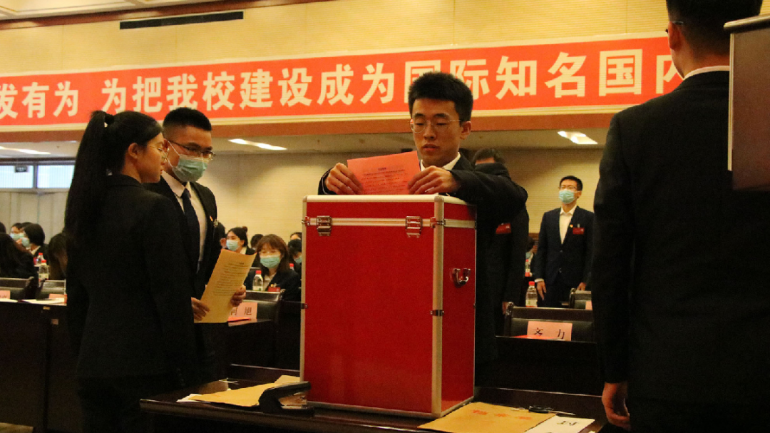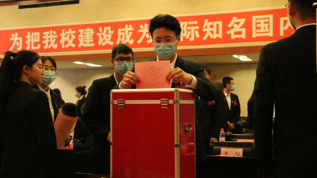 大会选举正式开始,工作人员宣读《大会选举办法》,宣布候选人正式人选名单,宣读大会总监票人、监票人、总计票人、计票人名单。大会选举学生会委员会委员、研究生会委员会委员、学生会主席团、研究生会主席团及校双代会代表。