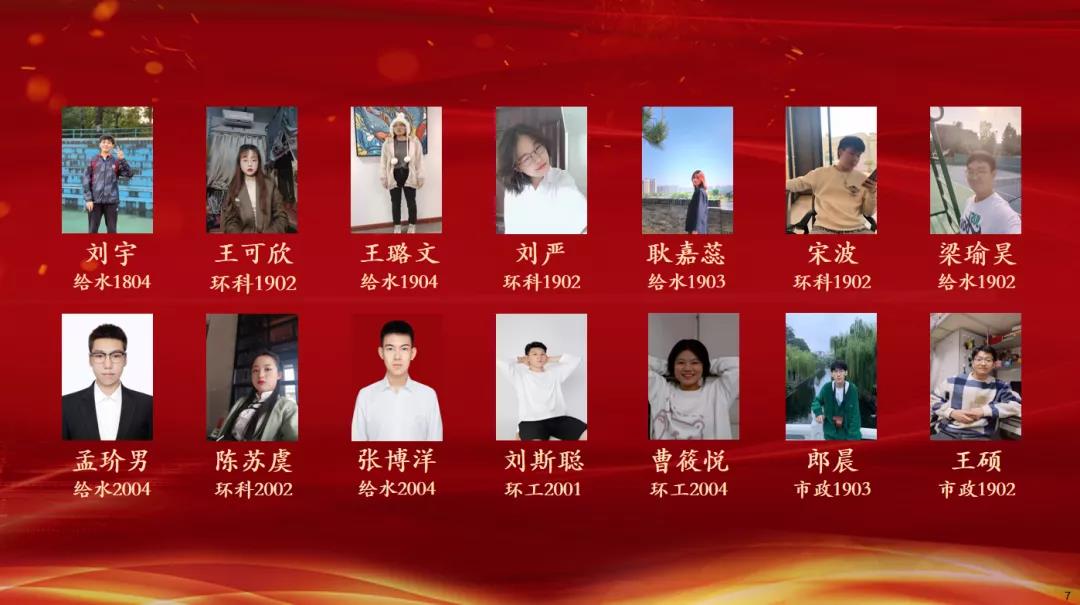 党委书记王劲松老师,院长卢金锁老师,党委副书记、副院长郑成华老师,副院长刘立忠老师,副院长张海涵老师,给排水教研室主任张建锋老师,环境科学教研室党支部书记张崇淼老师,教学实验中心主任葛碧洲老师,院长助理、环境工程教研室刘喆老师,科研办主任郭明老师,科研办张睿老师,学院办公室刘剑华老师,学工办主任冯永宁老师以及各兄弟院系辅导员莅临本场晚会暨颁奖典礼;各学院学生代表,spbo1手机比分