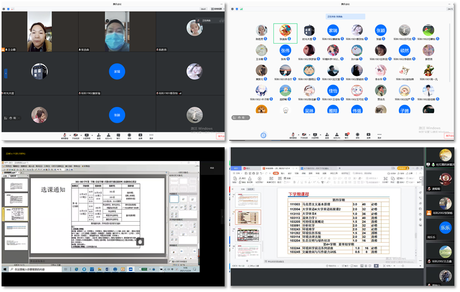 环境科学教研室从课程的教学设计、教学资源、课堂互动等方面入手,针对可能会出现的网络故障、在线教学平台交互性不足、师生之间的互动效果不佳等线上教学问题进行了研讨分析,认为应该做到课程准备充分、重点难点清晰、讲授深入浅出、师生互动活跃,同时可以学习慕课的教学设计和教学安排,使学生易于接受,教学资源要丰富多样,可以有视频、PPT等形式,学生乐于学习;教学方法也应紧跟教学效果进行相对应的调整和改善。同时,环境科学教研室还组织了由环境科学专业教师组成的四个学业指导组根据2018-2021级四个年级本科生的实际情况,就考研安排、本硕一体化选课、线上教学等事宜进行了指导,并了解学生的学习生活状态,做好在疫情防控期间的心理疏导工作。环境科学教研室党支部书记张崇淼教授与主任吴蔓莉教授希望同学们在提高自身防护意识的同时也提升学习的自觉性和自律性,为课程学习和创新创业竞赛早做准备,及时掌握课程动态,提早准备上课所需的软硬件设备,确保不耽误每一节课程。