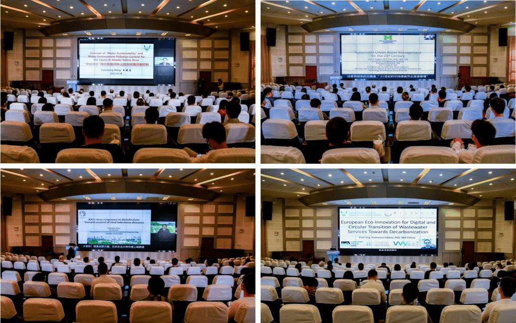 王晓昌以“可持续水理念和黄河中上游水环境污染控制”为题发表主旨报告,阐述了可持续水这一概念的深度内涵,并结合黄河中上游地区生态环境保护逐步向生态文明转变的历程强调可持续水的多维度含义,报告最后介绍了国际可持续水论坛组织的架构及职能。Glen T. Daigger报告题目是“21世纪的可持续城镇水资源管理”,从目标、举措、规划和管理等多个方面诠释了可持续城市水管理。首先提出水务行业面临的水资源管理策略、资源效率以及所有地区对水及卫生设施的广泛需求等三个亟需解决的问题。接着介绍了三项具体举措:注重基础设施的灵活性以满足不断更新发展的水处理技术;水行业创新周期长,水务人员需要争分夺秒开展行动;改良规划设计路径,降低运行风险等内容。Daisuke Sano发表题为“RNA病毒对消毒的反应:面向病毒感染性疾病的控制”的报告,主要阐述了RNA病毒在消毒剂作用下的不同行为,包括轮状病毒及诺如病毒分别通过氯和熟石灰消毒在变异过程中的多样性和敏感性等特征。Francesco报告题目为“欧洲面向减碳的污水服务数字化和循环转型”,阐述了欧洲生态项目概要,从政策、组织及立法等角度探讨技术创新的各项挑战,并介绍了从污水中回收纤维素及PHA进行循环利用的案例。