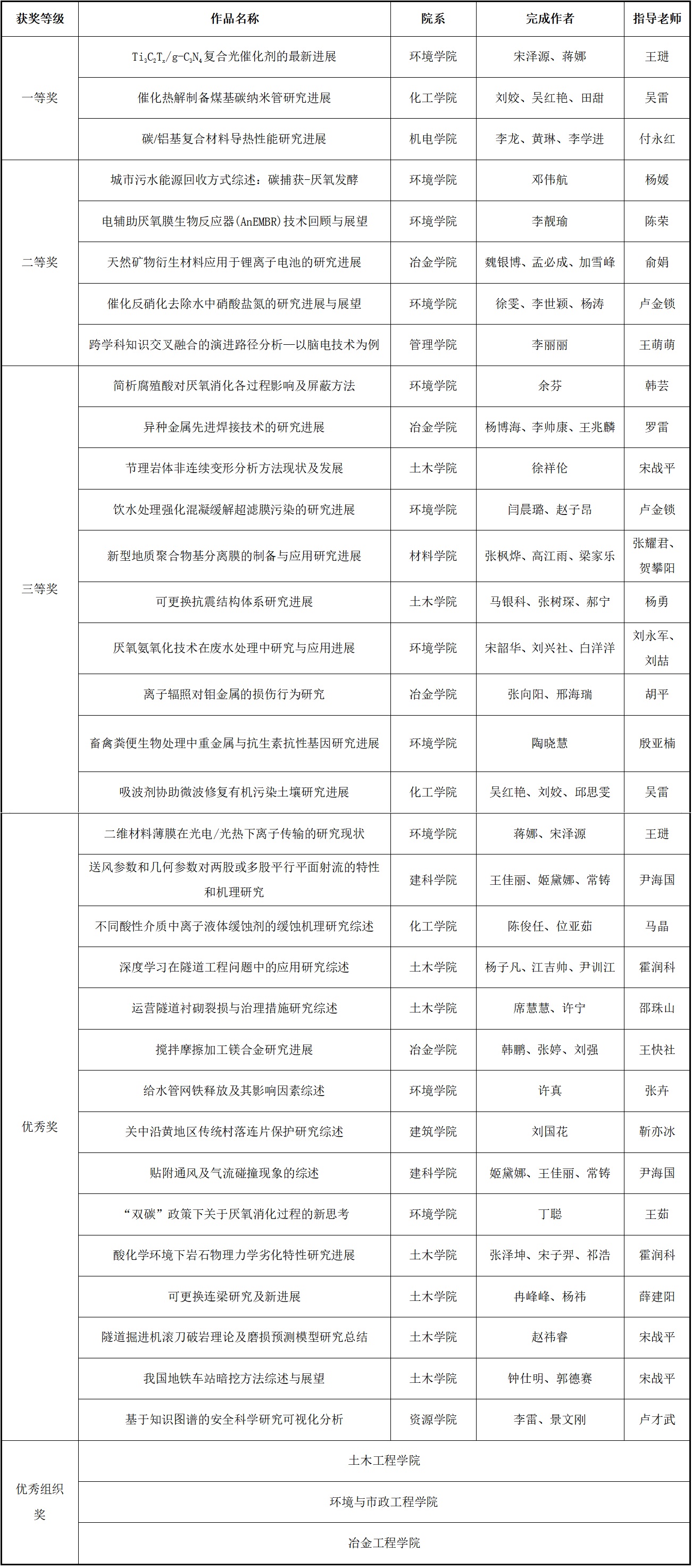附录:西安建筑科技大学第四届研究生文献综述大赛获奖名单: