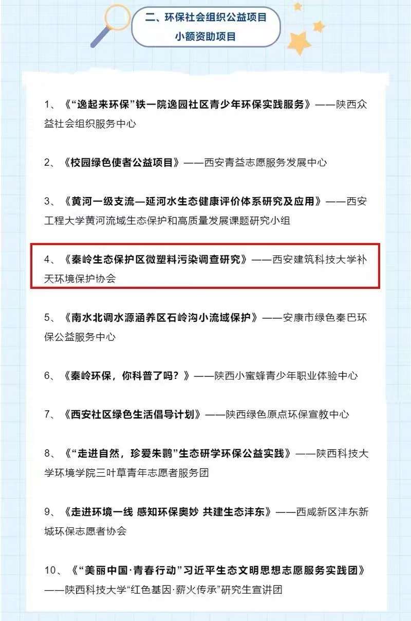 经过宣传发动、组织推荐、专家评审等环节,足球比分app 《黄河“几字湾”陕西段生态环境调研》项目被推选为2022年陕西省优秀公众参与案例,《秦岭生态保护区微塑料污染调查研究》被评为2022年陕西省环保社会组织公益项目小额资助项目。