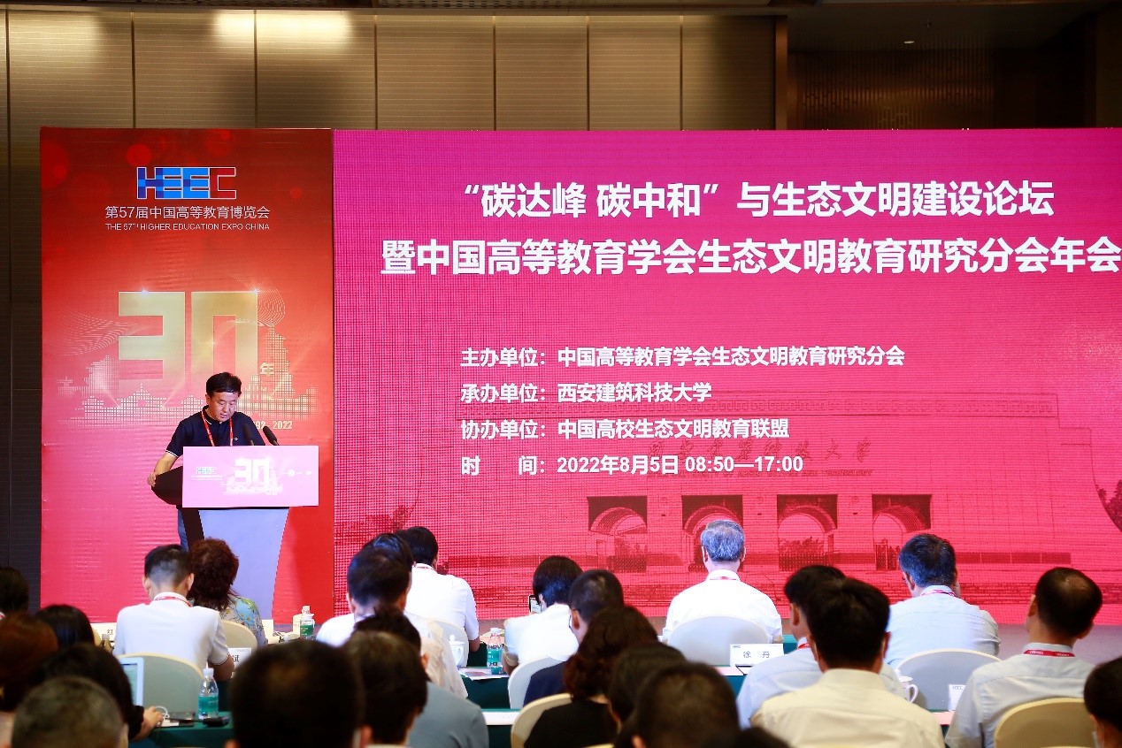 2022年8月5日,为助力我国“力争2030年前实现二氧化碳排放达到峰值、2060年前实现碳中和”重大战略目标,推进绿色发展,经中国高等教育学会批准和前期筹备,由中国高等教育学会生态文明教育研究分会主办,西安建筑科技大学承办,中国高校生态文明教育联盟协办的“碳达峰碳中和”与生态文明建设论坛暨中国高等教育学会生态文明教育研究分会年会在西安成功举办。