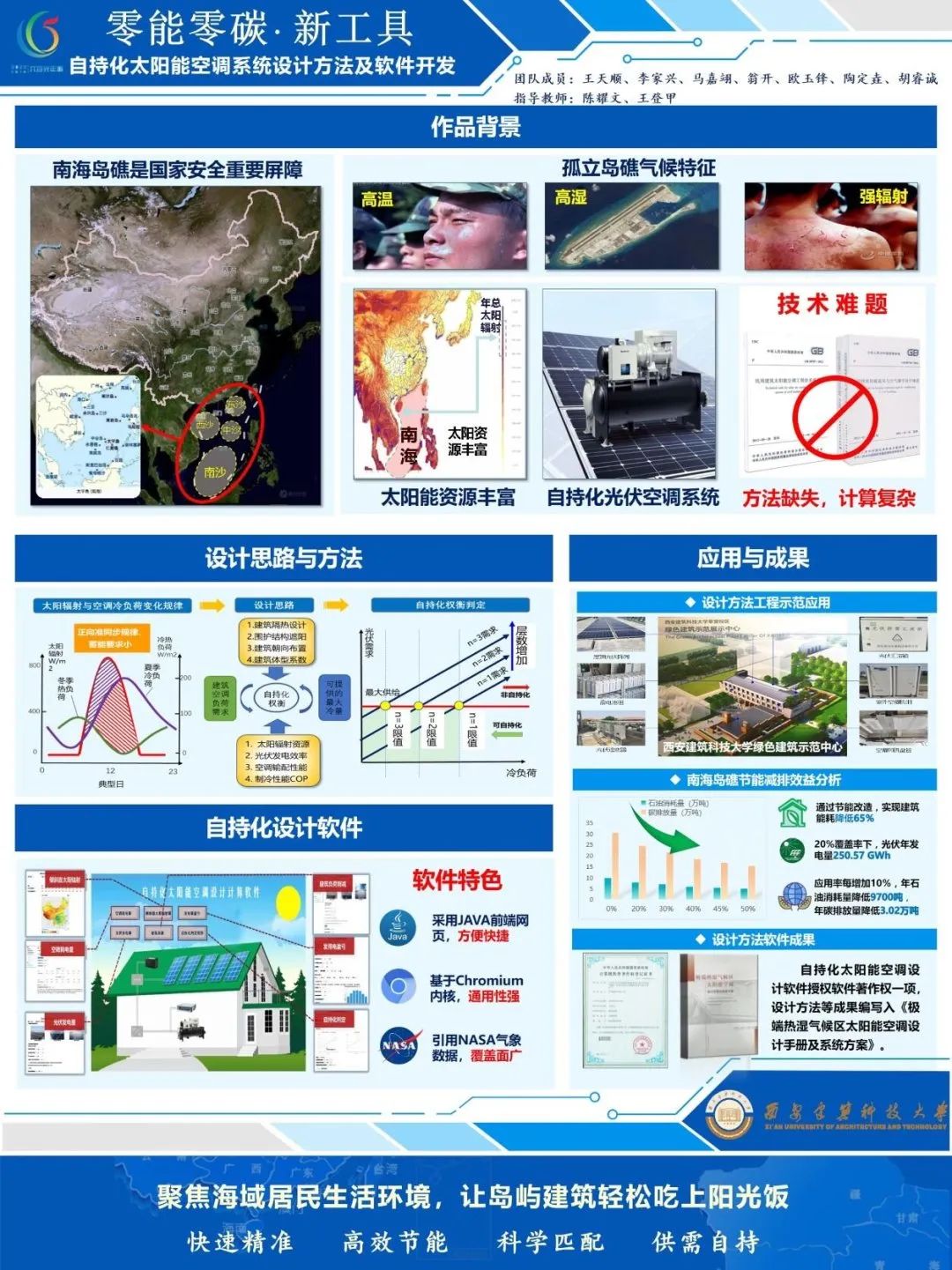 本设计方法及软件填补了孤立热湿地区自持太阳能空调设计理论方法空白,具有广阔的应用前景和良好的节能减排效益。目前,我国建筑能耗占社会总能耗的三分之一,其中,暖通空调能耗占到建筑能耗的60%以上。在“30、60”双碳目标约束下,“零能、零碳”已成为建筑节能领域发展趋势。我国东南海域分布的众多孤立岛礁是国土安全的重要屏障,当地常年极端高温高湿气候是军民常驻面临的重要挑战。利用岛礁地区丰富的太阳能为制冷空调系统赋能,有望实现岛礁建筑环境调控系统“零能、零碳”自持化运行。而现有设计规范标准中的空调系统设计方法难以指导自持化太阳能空调系统设计。基于此,根据建筑用能与系统供能供需平衡原理,以建筑节能设计与太阳能空调系统齐抓并重为核心,构建了自持化太阳能空调系统设计新方法,并以此为基础开发快速准确自持化太阳能空调系统设计软件。利用该设计方法与软件,能够快速计算得到自持化条件下建筑的热工节能参数以及太阳能光伏组件、蓄电池以及空调机组的设计容量。该方法已在太阳能空调实验示范工程得到了应用,验证了设计方法及软件的可行性。本设计方法及软件填补了孤立热湿地区自持太阳能空调设计理论方法空白,具有广阔的应用前景和良好的节能减排效益。