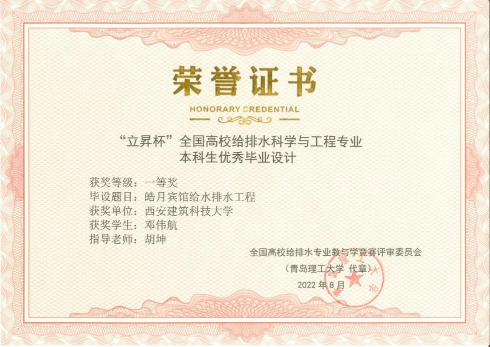 给排水专业毕业设计在100余所高校中脱颖而出,获得了一等奖的好成绩。
