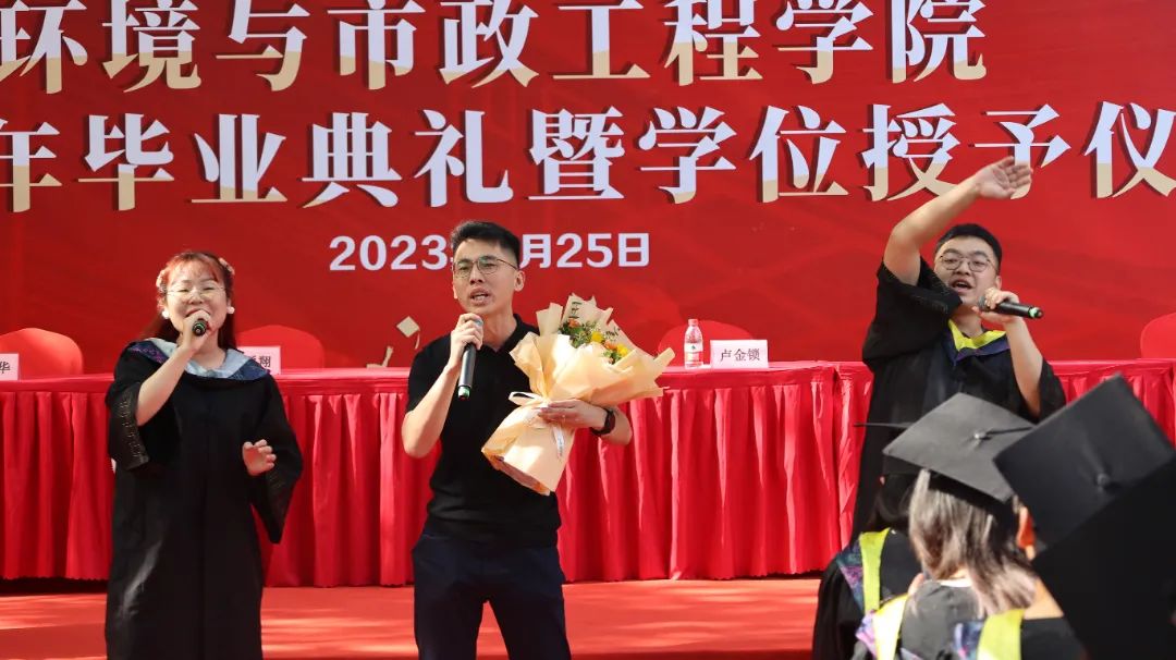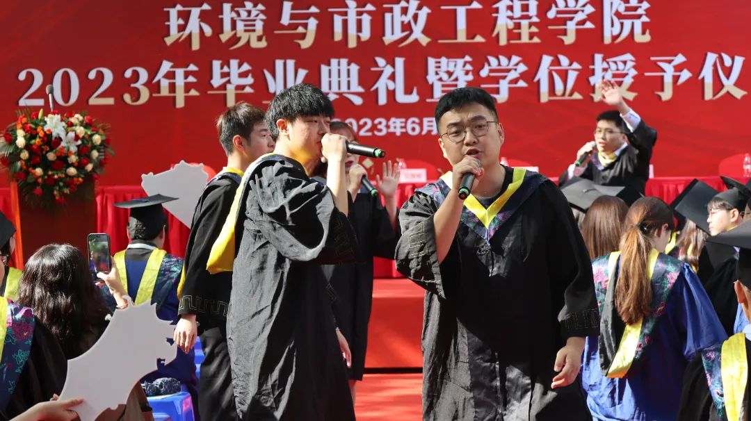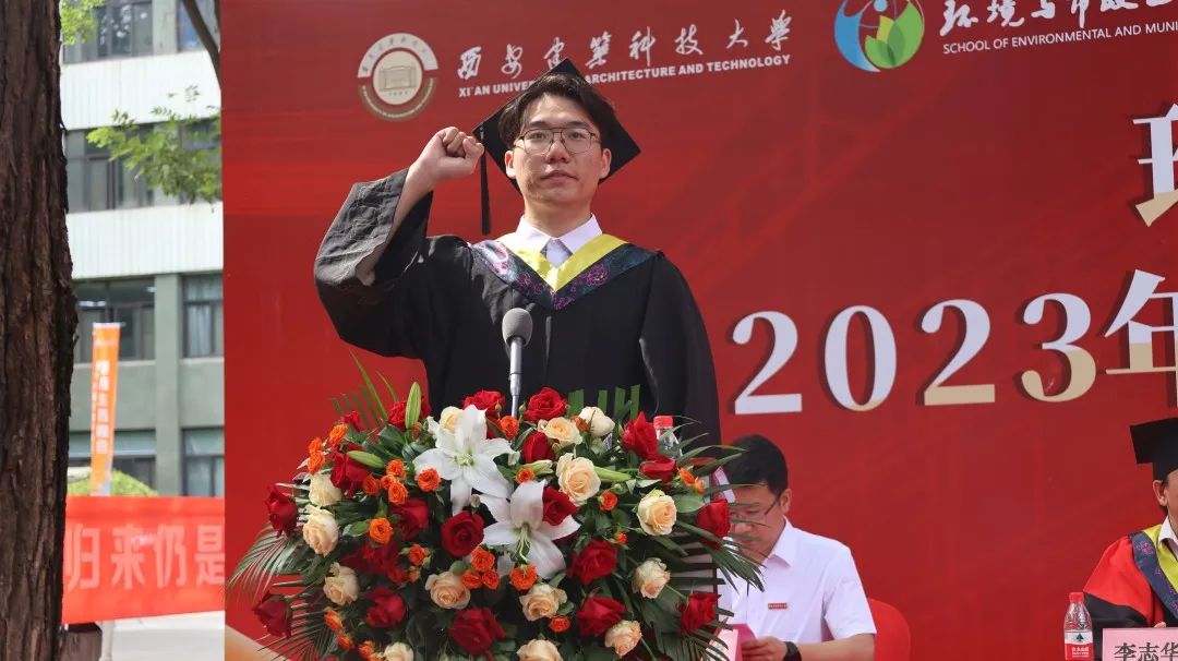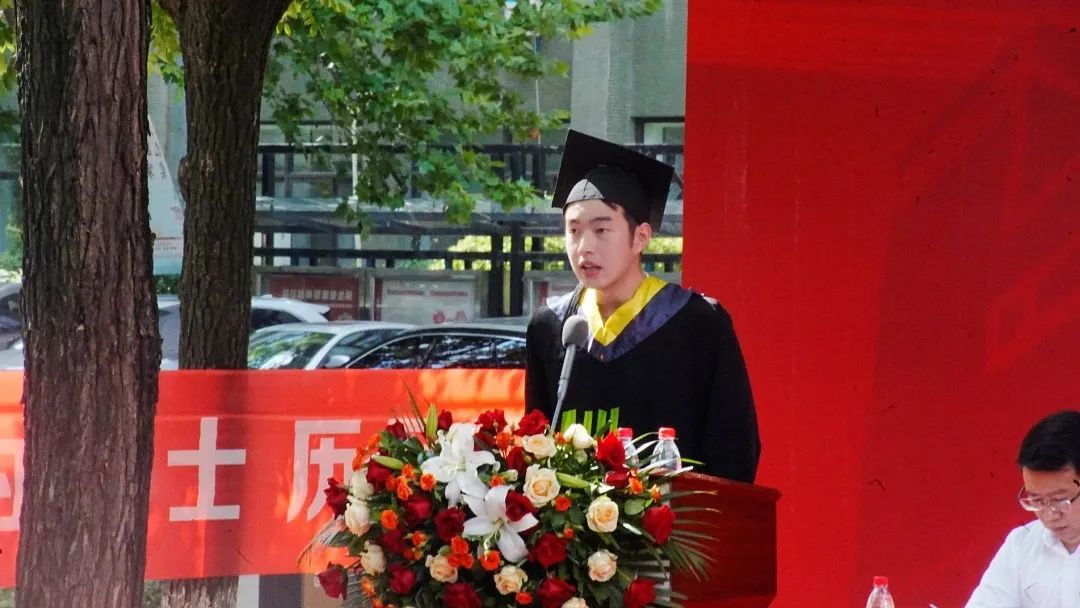 毕业研究生代表环工2005班袁雨晨同学,毕业本科生代表给水1901班王煜轩同学代表毕业生依次发言。回忆起建大求学的日子,所有美好的瞬间都历历在目,他们对母校抱以浓如墨般的感谢,衷心祝愿母校蒸蒸日上、人才辈出,祝愿恩师身体健康、工作顺利,祝愿同学前程似锦、皆得所愿!