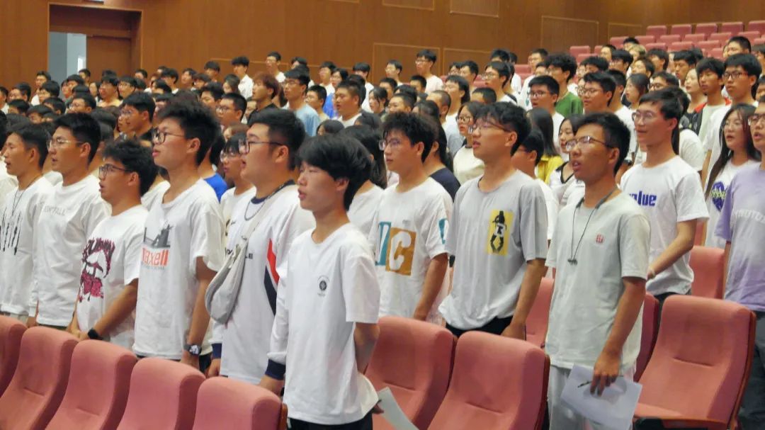 典礼最后,师生齐唱校歌《高举着民族复兴的伟大旗帜》,典礼在高亢激昂的歌声中落下帷幕。
