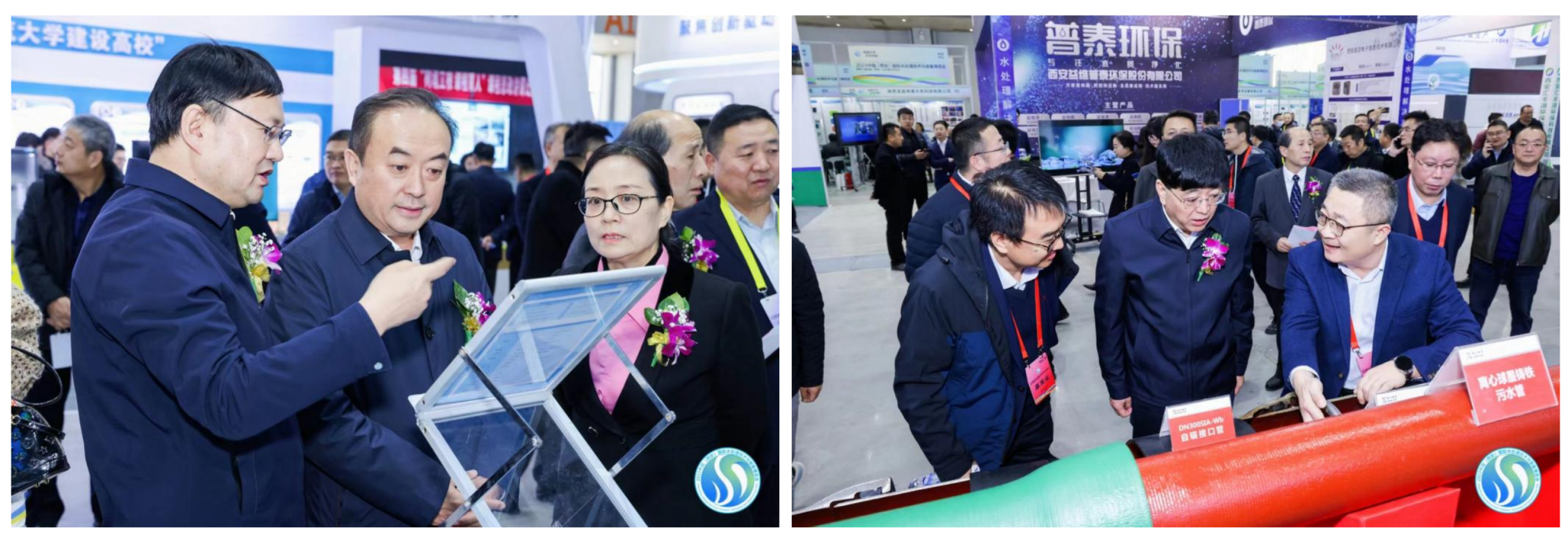 展览展示分为场馆展区及工程案例现场参观两部分,场馆共设置污水/污泥/废水处理设备、智慧水务、膜技术与膜处理产品、水务公司及工程案例、黄河流域治理成果、灾后应急给排水、市政工程装备及案例、科创成果、水环境治理水生态修复九个展区。共有包括陕西省水务集团、西安水务(集团)等70余家知名企业与知名院所参展,开展首日,吸引近数千名观众参与观展,为推动水资源的保护和可持续发展提供宝贵的经验和启示。案例参观项目包括黑河金盆水库扬水曝气水质改善示范工程、西咸新区沣西新城污泥处置项目以及陕西省水务集团周至县污水处理有限公司污泥资源化处置中心三项工程案例,引起了参会水业人士的高度关注。