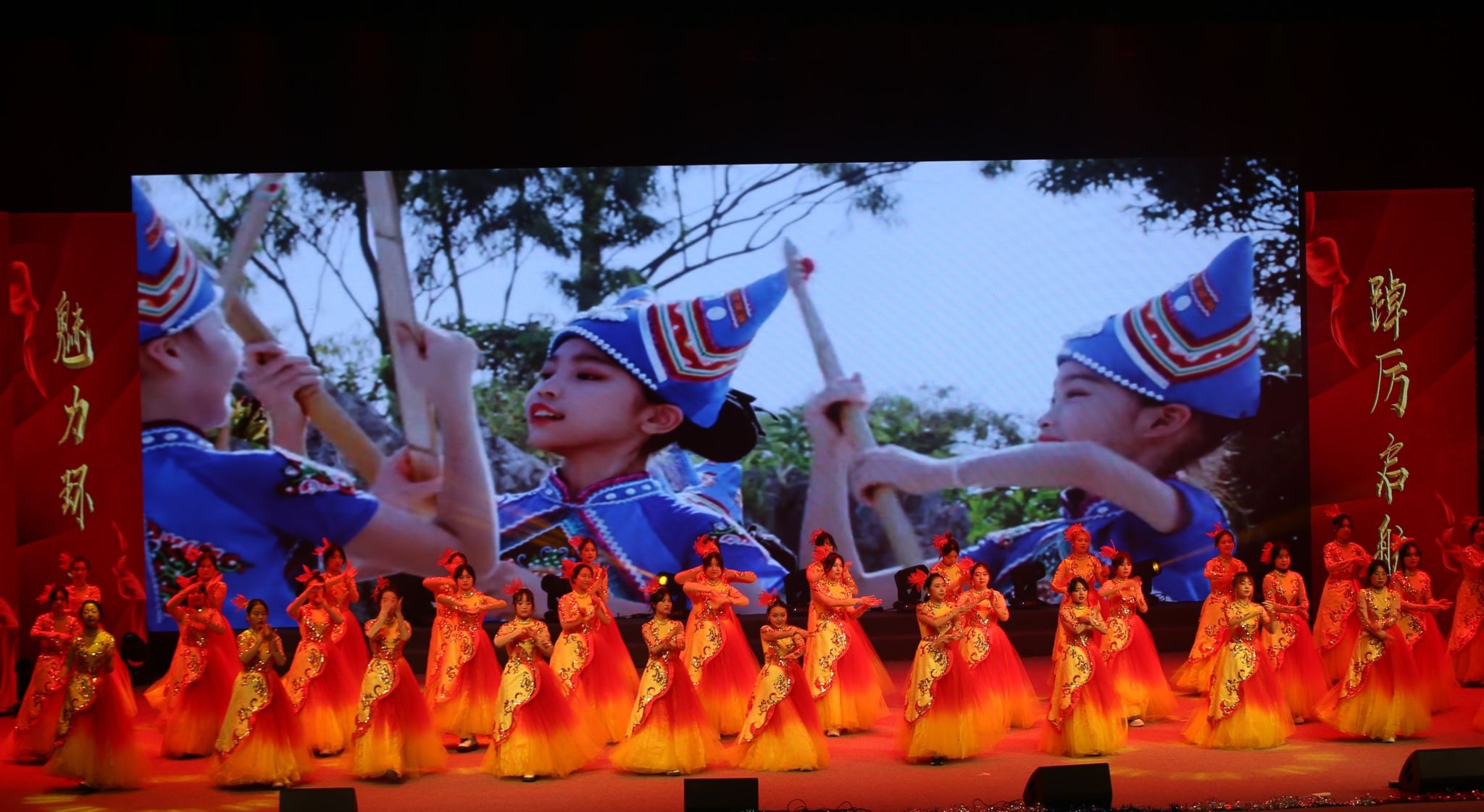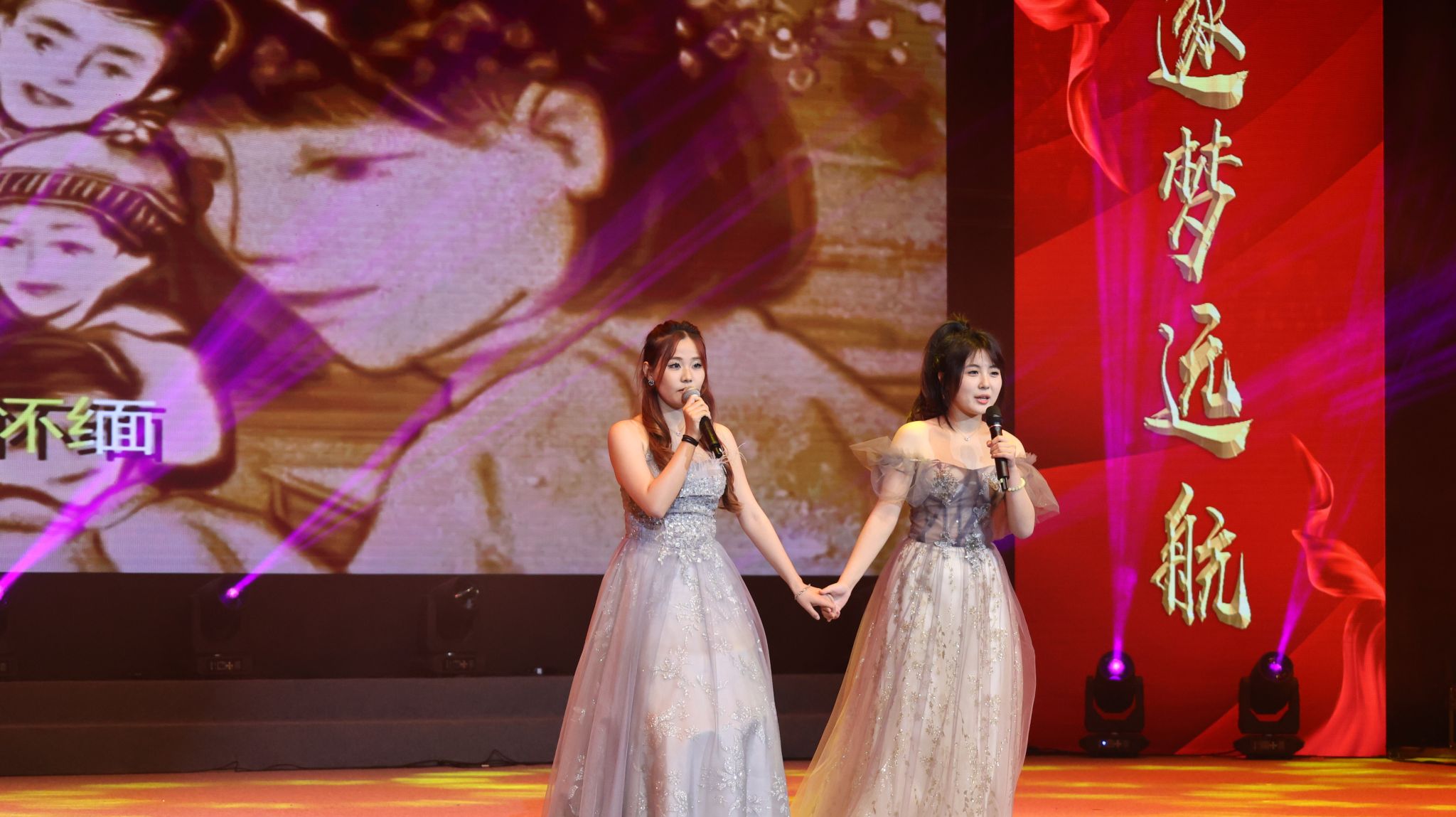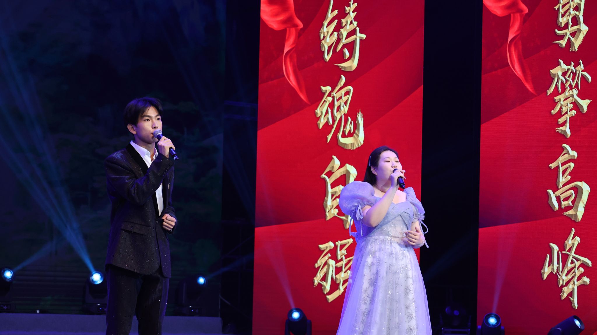 晚会在激动人心的开场视频中正式开始,视频回顾了学院一年来的主要学生工作和所获得的各项荣誉。随着一声声倒计时,舞蹈《再唱山歌给党听》盛大开场。慷慨激昂的歌声、优美婀娜的舞蹈,一步一动间,描绘了党的102年风雨兼程;一颦一笑间,表达了对党的衷心祝福。波澜壮阔已百年,开天辟地换人间。当年嘉兴南湖上的小小红船,早已成为当今国际的时代巨轮,将继续载着我们乘风破浪、勇立潮头。