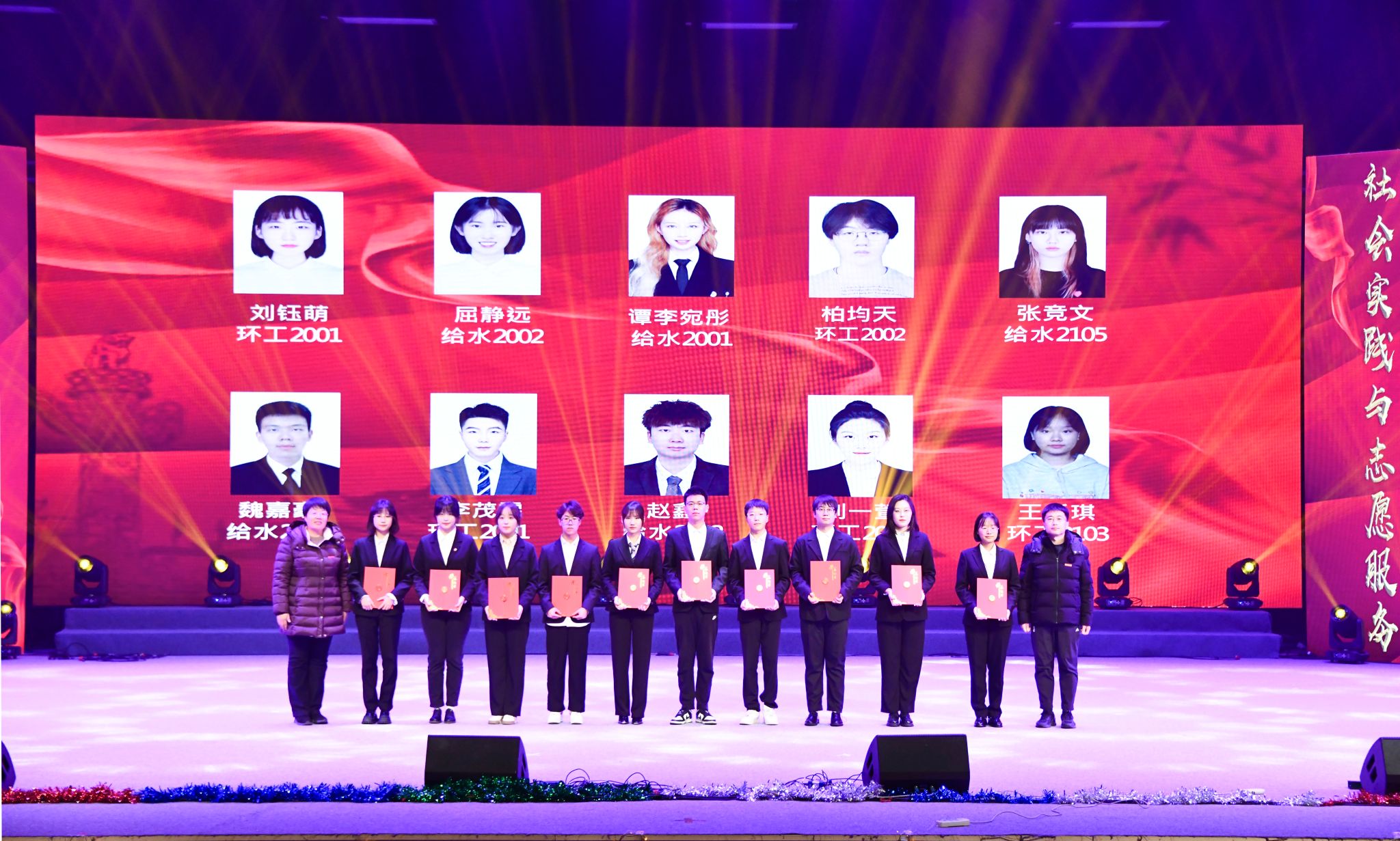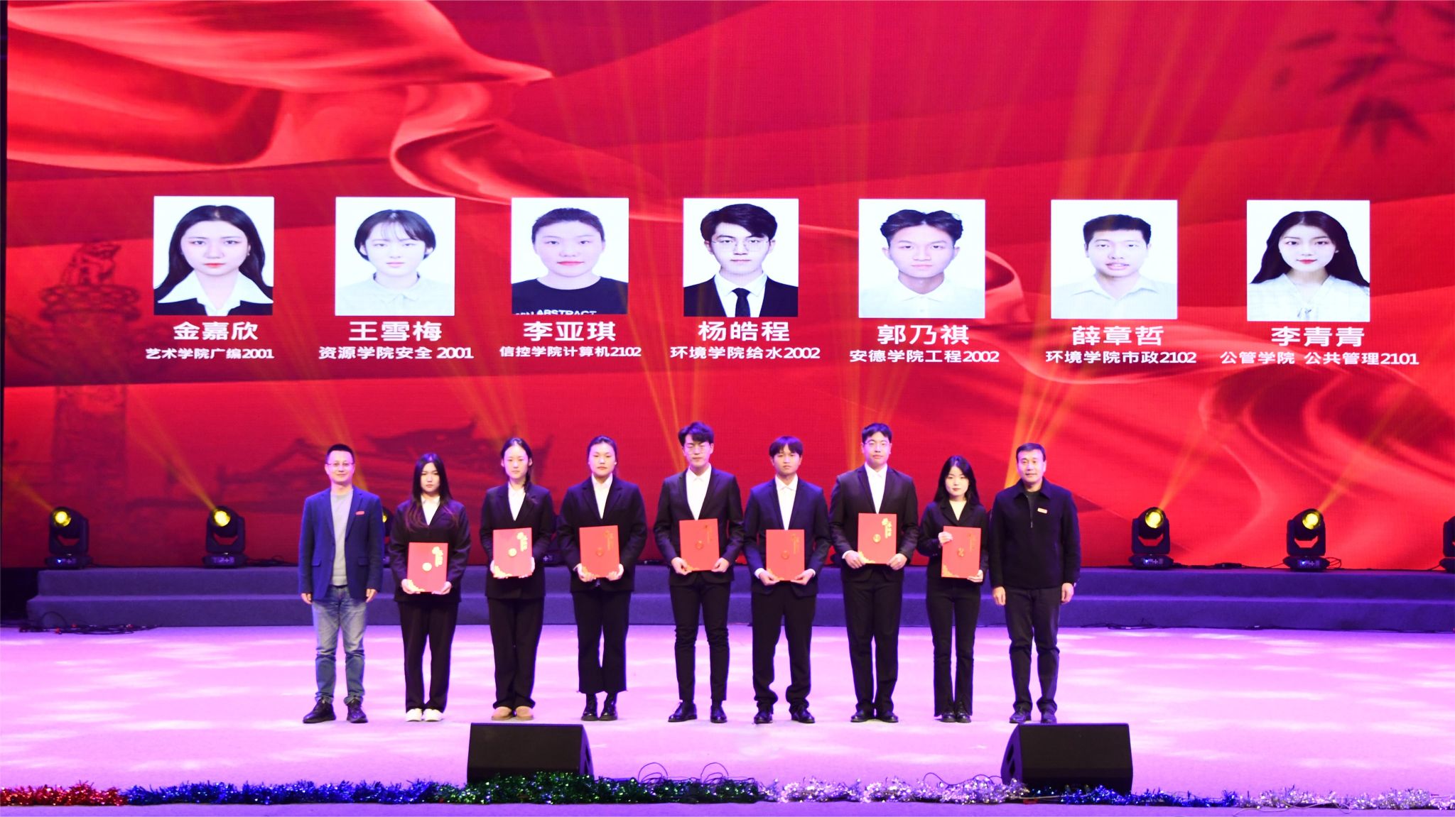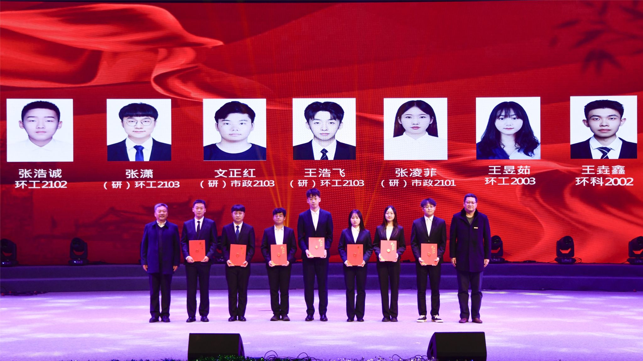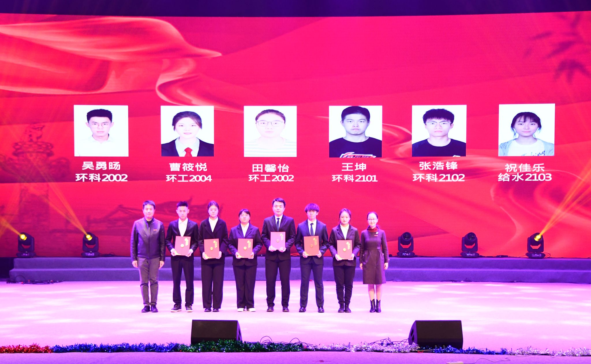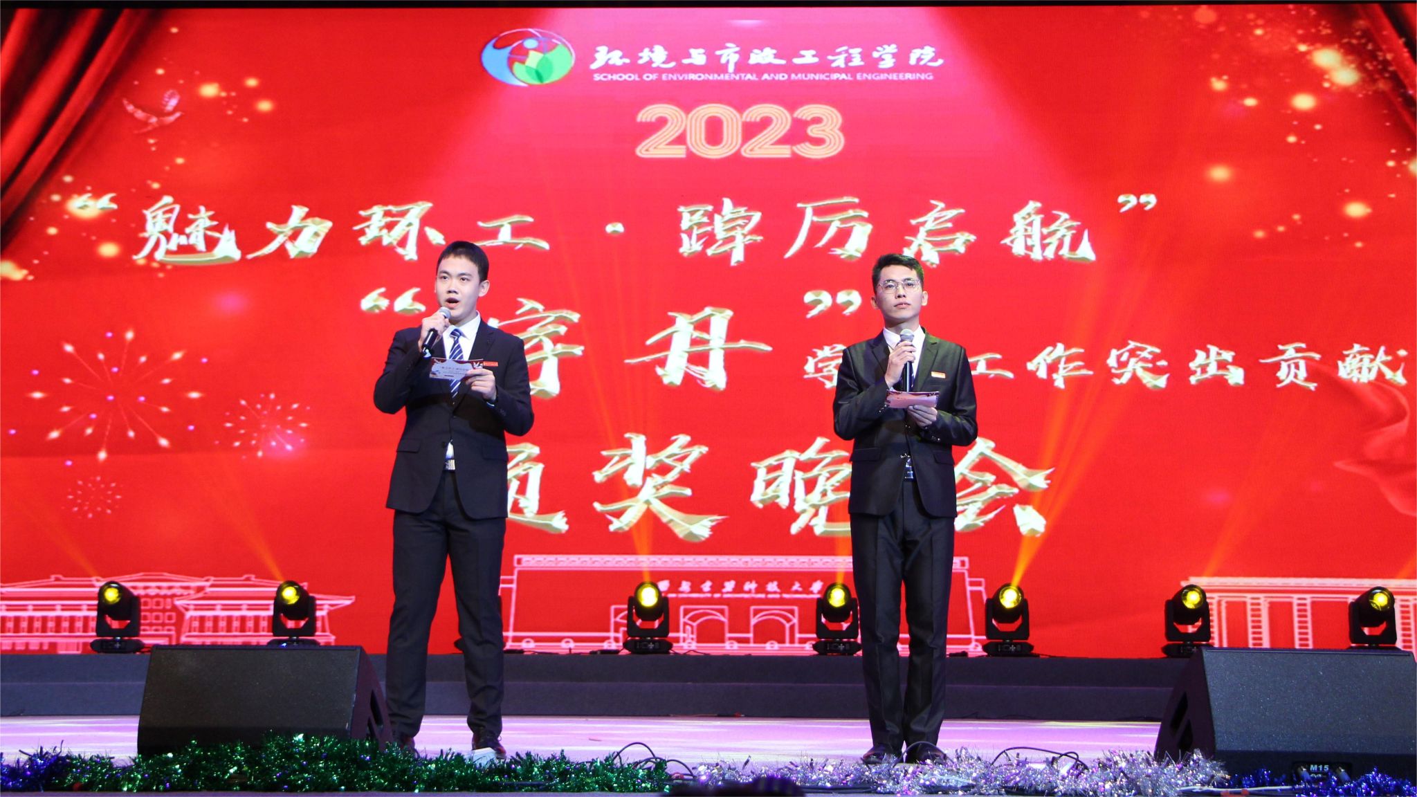 本次颁奖晚会持续两个小时,现场气氛热烈,掌声雷动。此次晚会是学院人才培养、入学教育的重要内容,进一步激发了同学们爱党爱国爱校的热情,传达了积极向上、勇于拼搏、敢于奋斗的精神。同时,这也是对受表彰同学学习工作的肯定,是对广大校友爱校荣校、重教助学、无私奉献的高尚精神的高度赞美与发扬光大,更是对在场每个人不忘初心、砥砺前行、再续新篇的激励。希望广大环境青年秉承“爱我环工,勇攀高峰”的拼搏奋斗精神,在未来的道路上砥砺奋进、勇敢前行,为国家、为人民、为学校学院的发展贡献自己的青春力量!