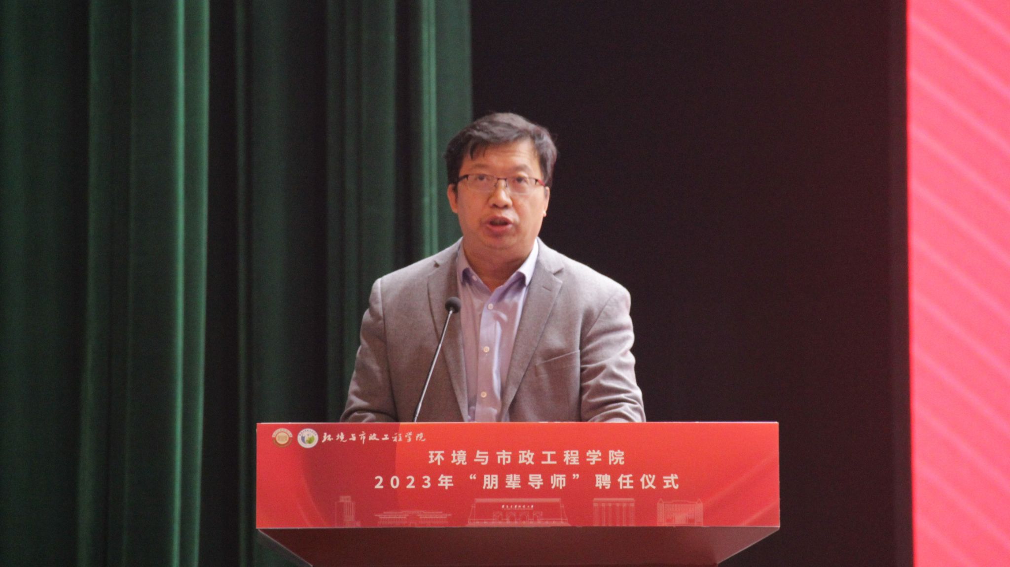 党委副书记、副院长付胜伟老师,副院长刘立忠老师,团委副书记、2023级研究生辅导员魏旖旎老师,2021级研究生辅导员李恺弘老师,2022级本科生辅导员杨依谋老师,2022级研究生辅导员王浩飞老师,2023级本科生辅导员薛章哲老师,给水2301班班主任胡瑞柱老师,给水2304班班主任雷振老师以及2023级全体本科生。仪式由2023级本科生辅导员薛福举老师主持。