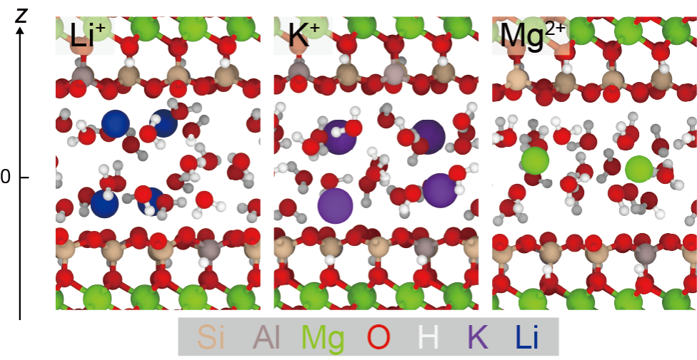 图3.分子动力学模拟离子在蛭石纳米通道内的输运过程