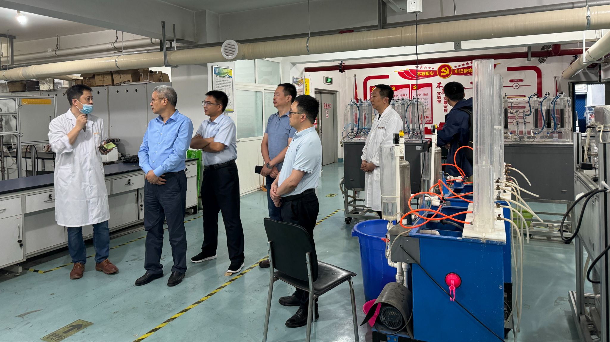 随后,张土乔一行在院领导的陪同下,参观了学院教学实验中心、教育部西北水资源与环境生态重点实验室、陕西省环境工程重点实验室等教学科研平台。参观过程中,曹宏伟和文刚详细介绍了实验室的研究方向、设备配置和科研项目进展情况。张土乔高度评价了实验室的科研条件和研究成果,并鼓励师生们继续努力,争取在环境科学研究领域取得更大的突破。