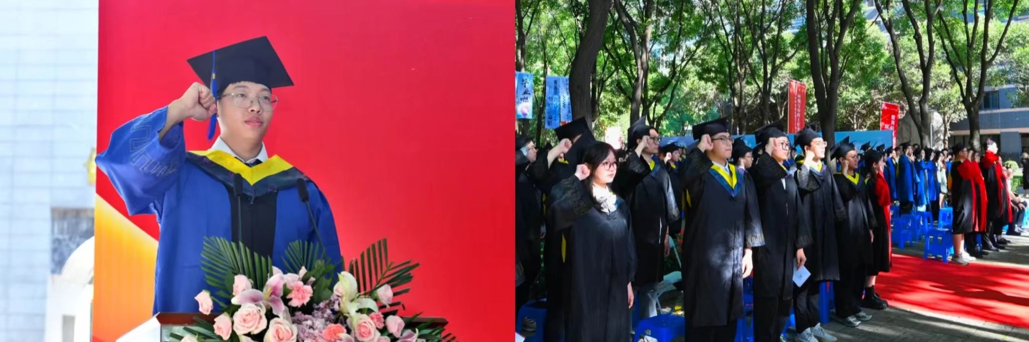 毕业研究生代表,环境科学与工程2020级博士生汪昭同学,毕业本科生代表,环科2002王垚鑫同学代表毕业生发言。回忆在建大的美好求学时光,充满收获、感动,他们向母校表达衷心的感谢,祝愿母校繁花盛开、誉满天下,祝愿老师们工作顺利、桃李满园,祝愿同学们在追寻梦想的道路上披荆斩棘,一路向前!
