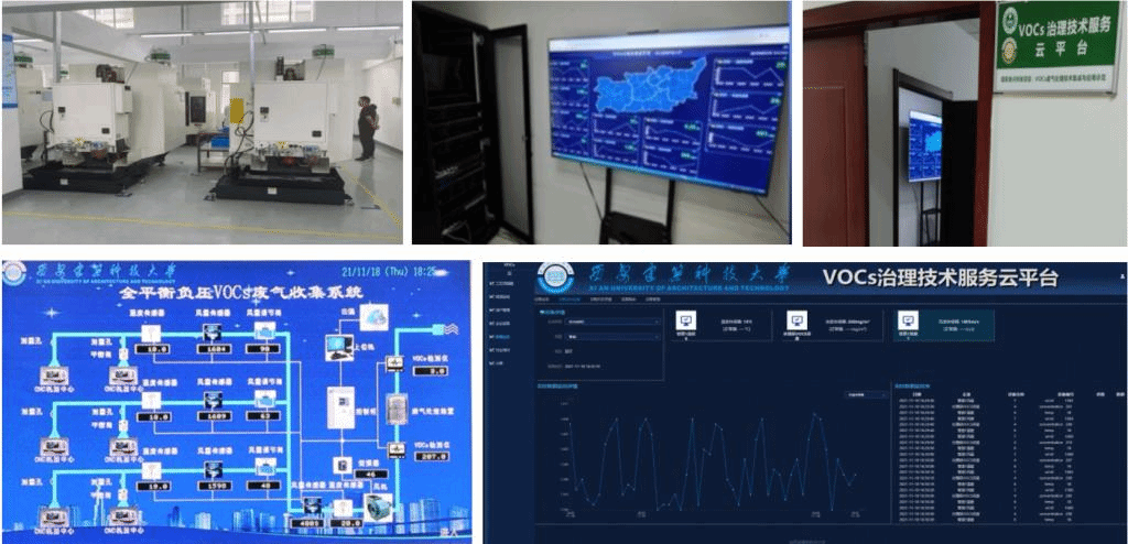 围绕有机溶剂使用源和工艺过程源等重点行业VOCs排放源涉及行业多、废气收集率低、无组织排放大、净化效果差、设备运行成本高以及环境监管缺少科学技术规范支撑等共性难点问题,研究团队依托国家和陕西省重点研发课题,通过理论分析、试验研究和工程实践,开展了VOCs废气扩散模式、全平衡负压废气收集系统设计方法、净化系统运行稳定性分析和性能预测以及吸附催化材料循环利用等研究,基于技术服务云,构建了安全、节能、环保三位一体的工业 VOCs 废气全过程治理技术体系,为实现“一厂一策” VOCs废气治理,环境管理提供科学、专业的技术服务。
