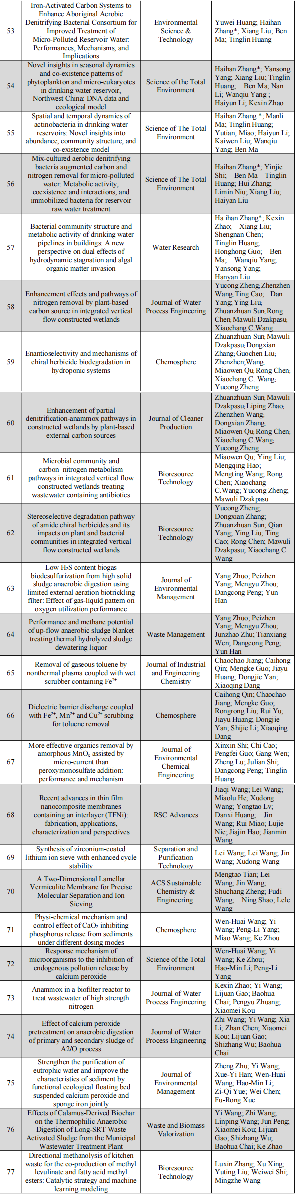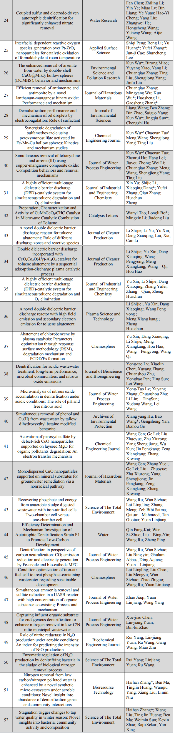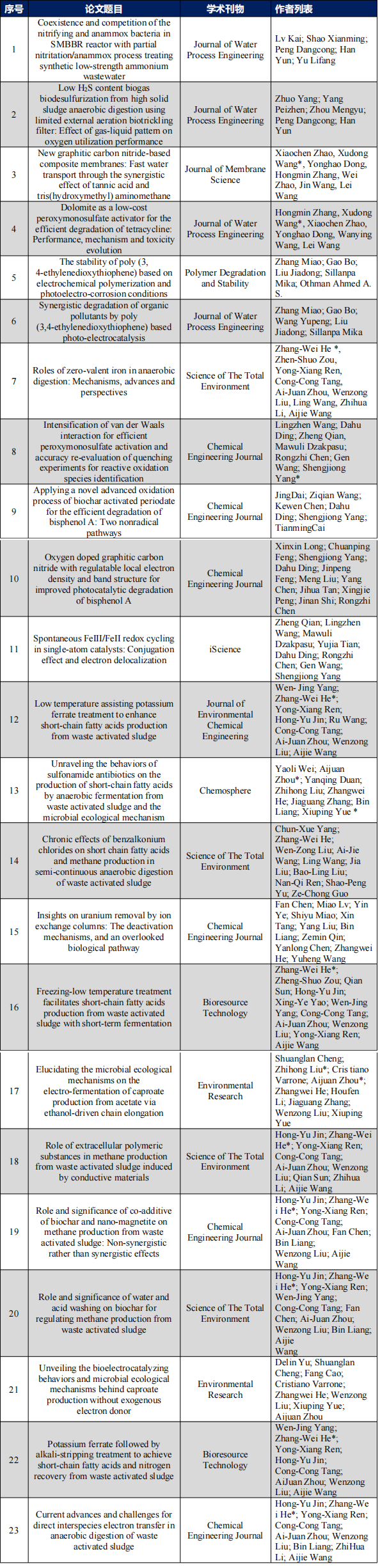 表4 2022年环境工程教研室发表论文列表