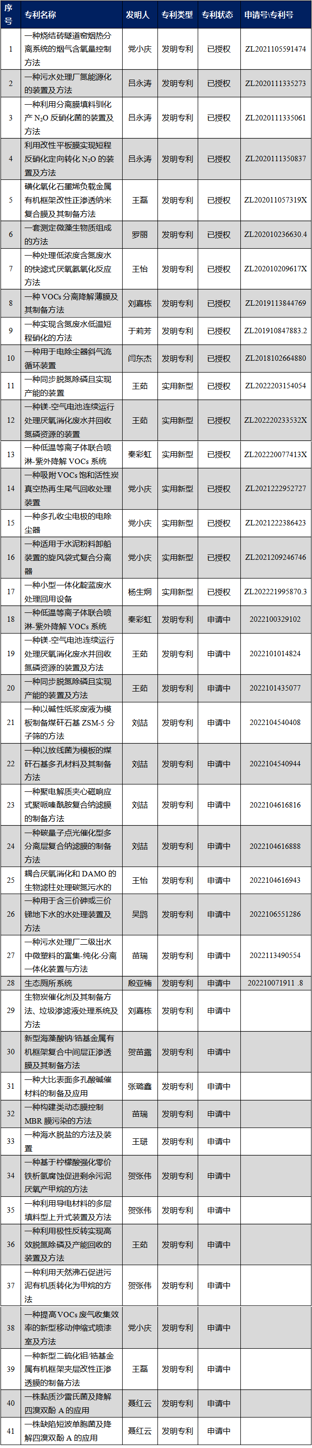 此外,2022年度,累计授权专利17项,其中发明专利10项、实用新型专利7项。申请专利24项(表5):