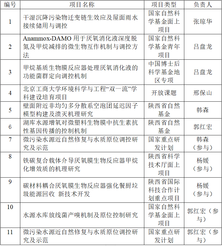 2022年度,环境科学教研室获准主持国家自然科学基金面上项目1项、青年基金项目1项,中国博士后面上项目1项,省部级项目2项,承担国家重点研发计划1项,陕西省重点研发计划国际科技合作重点项目1项,主持横向技术攻关课题5项。研究成果荣获环境保护科学技术奖二等奖1项,陕西省高等学校科学技术研究优秀成果特等奖1项,出版专著2部,编制地方标准1项,发表SCI论文21篇,其中SCI一区论文9篇,授权发明专利2项,申请发明专利11项,获准软件著作权8项。