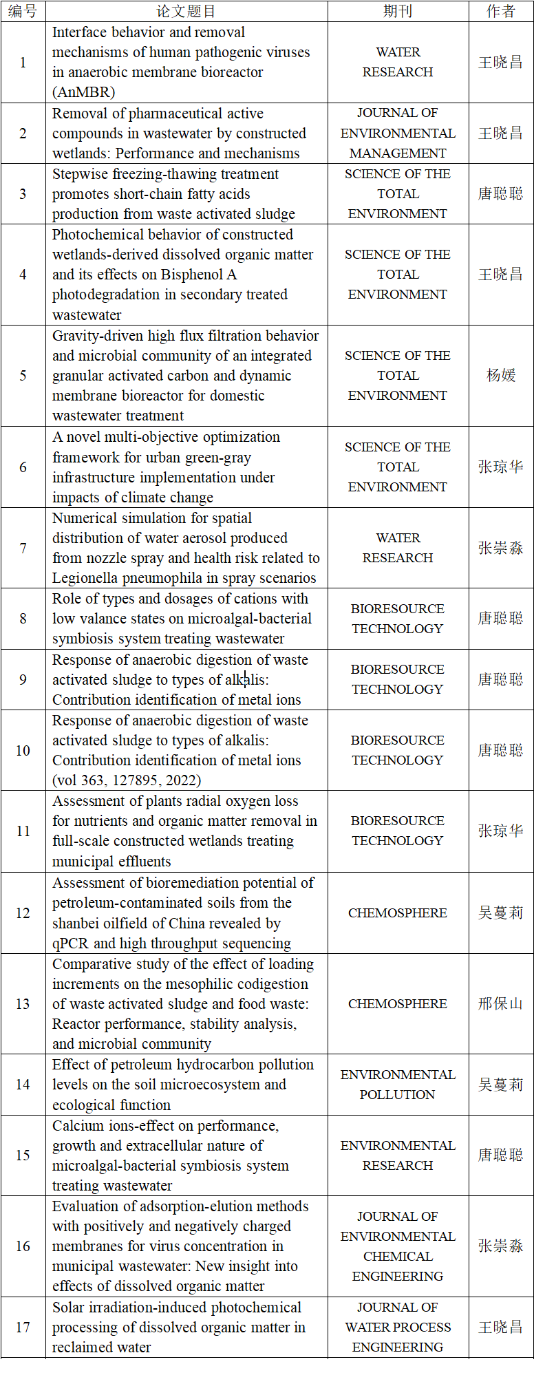 环境科学教研室2022年度成果