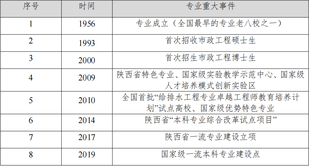 表2 西安建筑科技大学给排水科学与工程专业重大事件