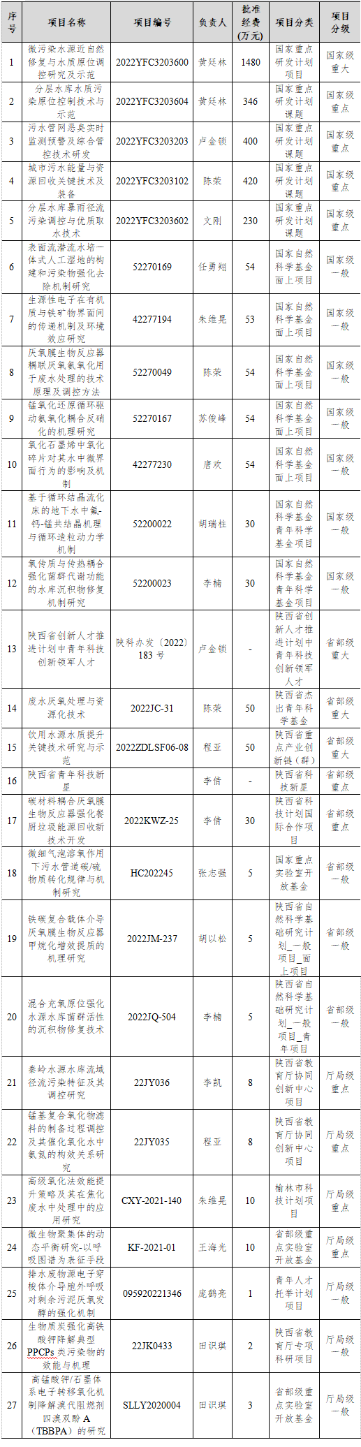 2022年给排水教研室新增2个科研平台。我校黄廷林教授团队申报的“秦岭水源地水质陕西省野外科学观测研究站”成功获批,这是我校获批建设的首个野外科学观测研究站,也是我校基础研究平台建设的新突破。此外,西安建筑科技大学李志华教授负责的《西安市环境工程装备智能化技术重点实验室》通过认定。