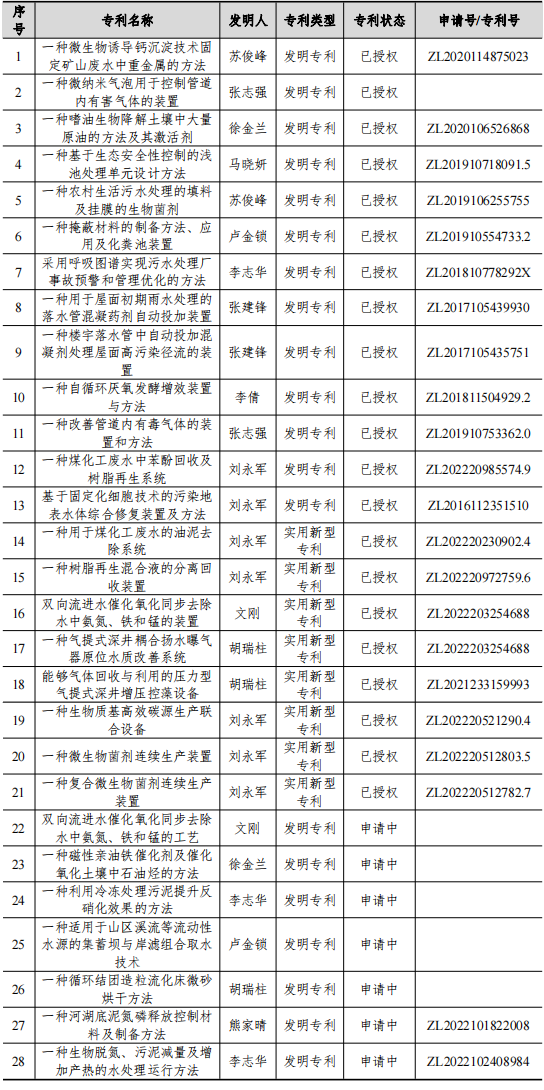 2022年给排水教研室共申请专利28项,其中授权21项,在审7项。主要授权专利见表8所示。