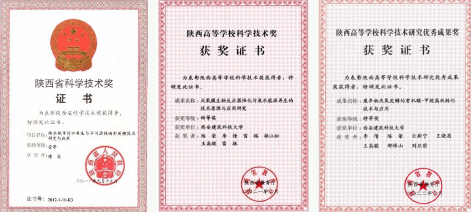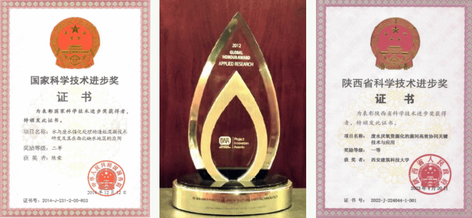 研究成果获得国家科学技术进步奖二等奖、国际水协会全球项目创新奖、陕西省科学技术奖一等奖、陕西高等学校科学技术奖特等奖、陕西青年科技奖等。授权发明专利20余项,实用新型专利6项。发表SCI论文200余篇。出版学术专著3部。