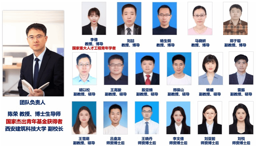 团队带头人陈荣教授,国家杰出青年科学基金获得者,国际水协会会士,二级教授,博士生导师。现任西安建筑科技大学副校长、“西北水资源与环境生态”教育部重点实验室主任。研究领域为废水处理与资源化,主持国家及省部级重点项目10余项,发表论文100余篇。先后担任SCI期刊H2Open J主编和J Water Process Eng副主编、国际水协会中国青年委员会副主席、日本学术振兴会(JSPS)海外研究员、中国环境科学学会理事等学术兼职。成果获国家科技进步二等奖1项、国际水协会全球创新奖1项、陕西省科技进步一等奖3项等奖项。
