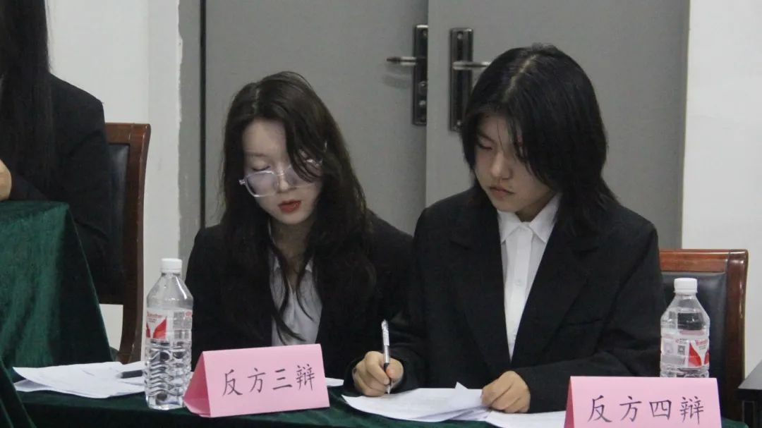 正方一辩潘园盟同学、反方一辩冯群林同学进行开篇立论,他们所持观点清晰,立场明确。攻辩阶段,双方二辩问乐天、黄晓宇同学和三辩熊英豪、柳叶青同学紧抓对方立论中的漏洞积极展开质询,展现出优秀的临场发挥能力与语言组织能力。在自由辩论环节,双方辩手沉着冷静应对对方的提问并进行反驳。双方四辩崔冉、穆卓越同学总结陈词,他们总结归纳了本方的观点,回应对方质询,语言简明扼要,陈词掷地有声。