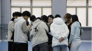 团委学生会成员在体育馆二楼举办了一场以“敞开心扉”为主题的团建活动。
