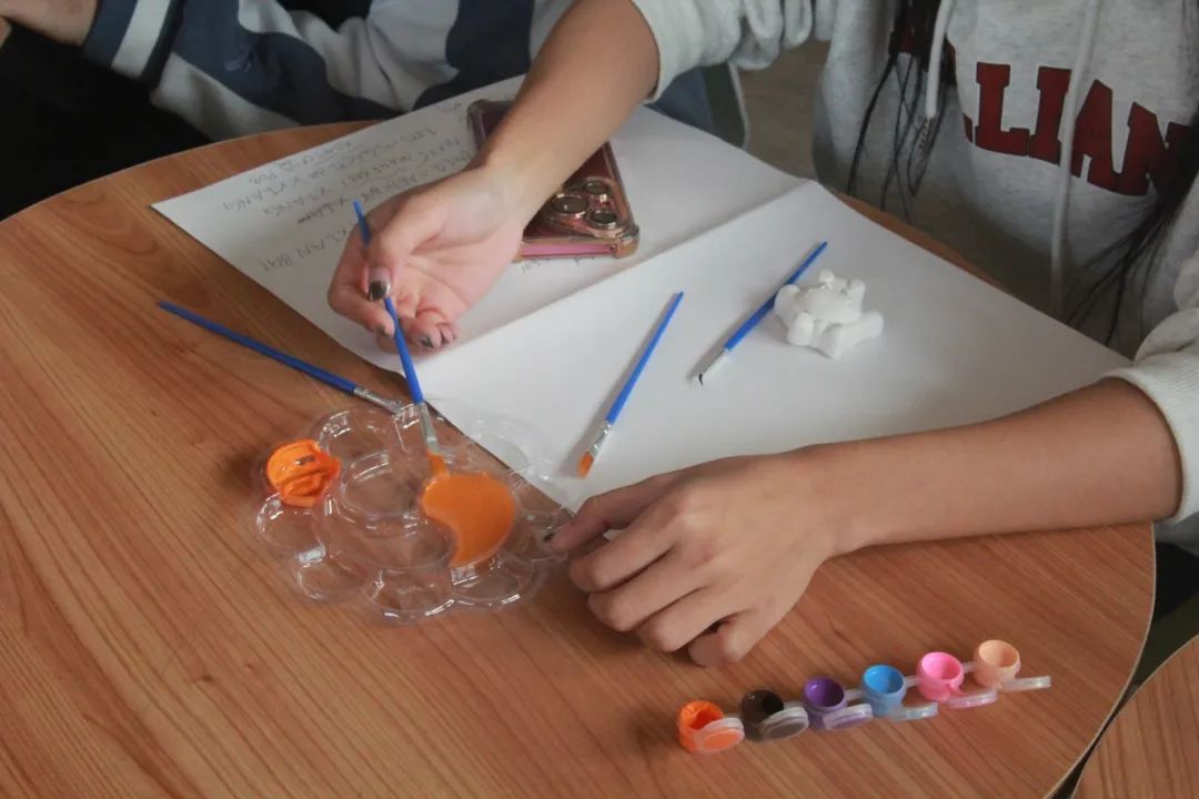 石膏娃娃彩绘活动中,参与者们手持画笔,精心创作,完成后纷纷用镜头记录。整个过程犹如一座心灵之桥,连接起参与者们的心意与情感,加深了彼此的了解与交流。