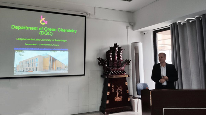 随后,Mika Sillanpää教授就拉普兰塔工业大学的绿色化学实验室(Department of Green Chemistry)团队成员及实验室研究设施进行了简要介绍,并且展示了实验室团队论文及专著成果。接着介绍了绿色化学实验室团队的主要研究方向,分别为高级氧化技术(AOP)、吸附催化萃取(ACE)、电化学处理(ECT)和环境分析检测及建模(EAM),并且就这些方向的研究成果进行了详细汇报。最后介绍了实验室团队在芬兰及国际上的研究合作对象、合作伙伴和资助机构,并对其致谢。