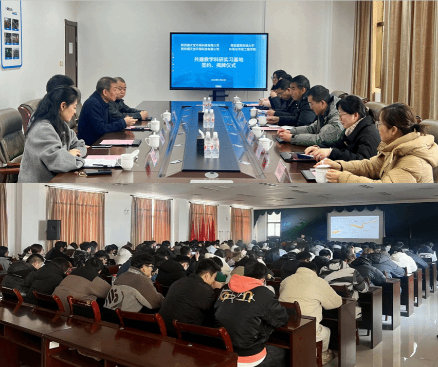 环境工程教研室党支部书记郭新超、陕西省膜分离技术研究院副院长王旭东、吕永涛,教师代表曹利、聂红云、张倩、秦彩虹等,以及环境工程2021级全体本科生齐聚一堂,共同见证了这一重要时刻。