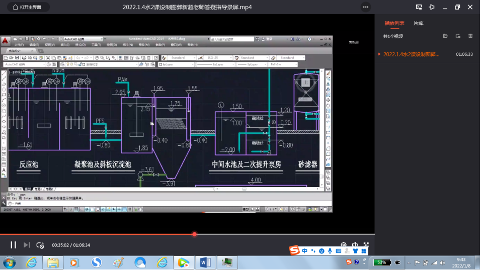 1月6日,王旭东、苗瑞老师集中指导高程图中构筑物高度的确定,泵和管道设置阀门需要注意的问题