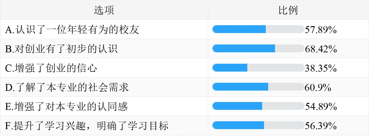 问卷调查统计结果显示(表2),参会学生通过此次线上沙龙,更加了解了本专业的社会需求,增加了专业认同感,明确了学习目标,提升了学习兴趣。